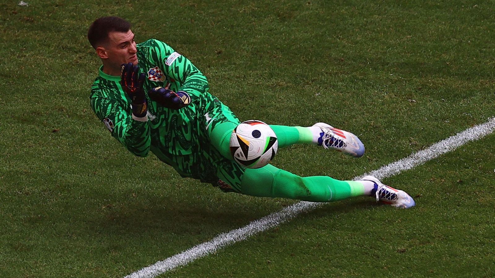El portero de la selección de Croacia, Dominic Livakovic, ha evitado el segundo gol de Albania con una gran intervención a remate de Bajrami.
