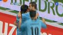 Silva para Cazorla, quien tras llegar a la línea de fondo, se para y la pone al primer palo donde Soldado remata.