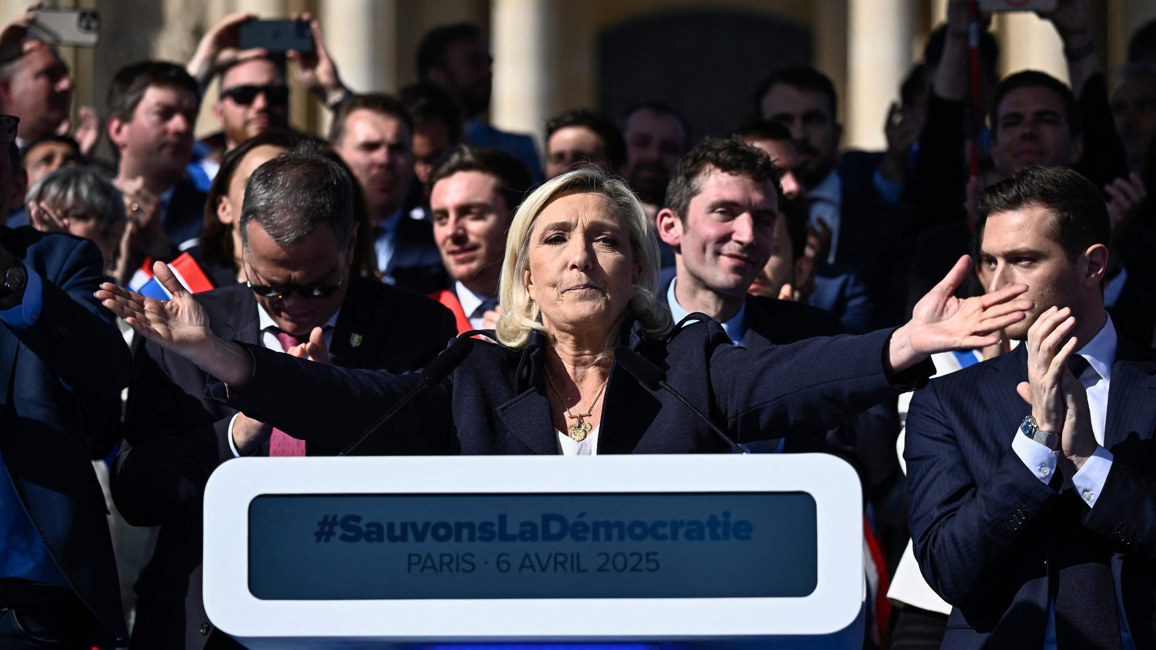 Marine Le Pen ha protagonizado un acto ante miles de seguidores en París en el que ha asegurado que no va a "bajar los brazos" pese a la condena que...