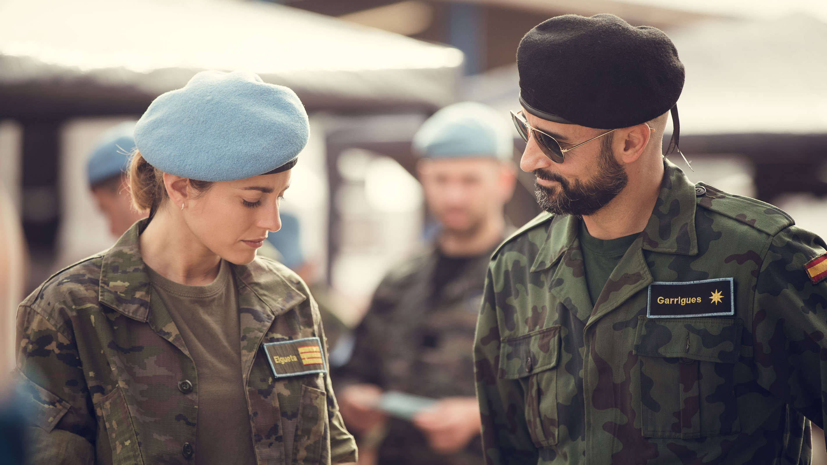 ¿Cuántos sabes del ejército? En la serie Fuerza de Paz hemos retado a algunos de nuestros protagonistas a que nos demuestren sus conocimientos sobre rangos y directrices militares. Así que hemos sentado a Martiño Rivas, Carlos Serrano, Iria del Río y Félix Gómez para someterles a nuestro test. Creéis que sabrán decirnos ¿qué rango es más alto: sargento primero o teniente coronel? ¿Acertarán sobre si manda más un capitán o un comandante? ¿O serán capaces de saber cuántas puntas tiene la estrella que lleva el comandante en su uniforme sin poder contarlas? ¿Lo sabríais vosotros? Lo que os podemos adelantar es que se han reído mucho.