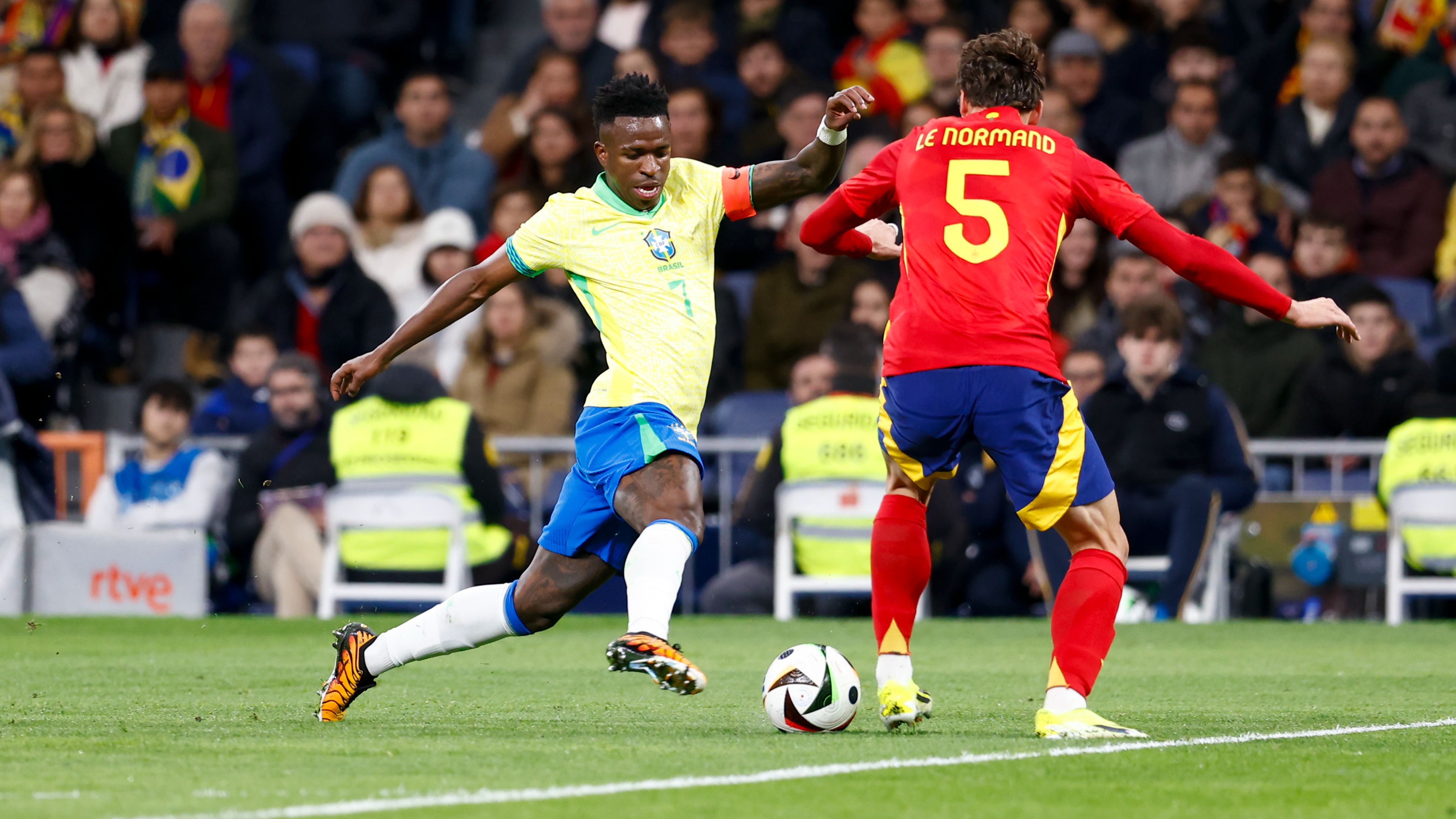 El estadio del Santiago Bernabéu en Madrid acoge el encuentro entre España y Brasil.