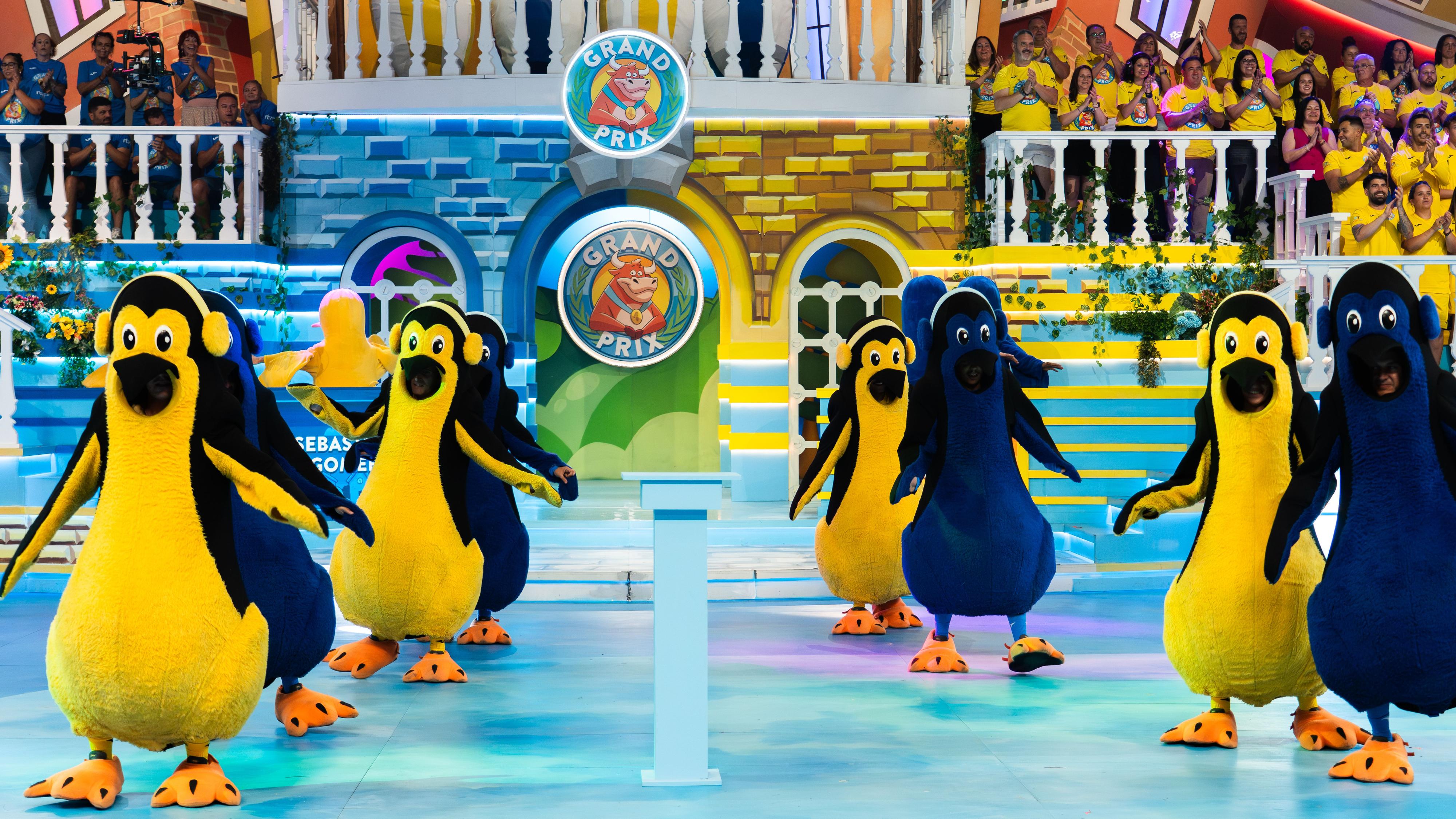 Pingüinos amarillos y azules bailan en la apertura de la gran final del Grand Prix 2025