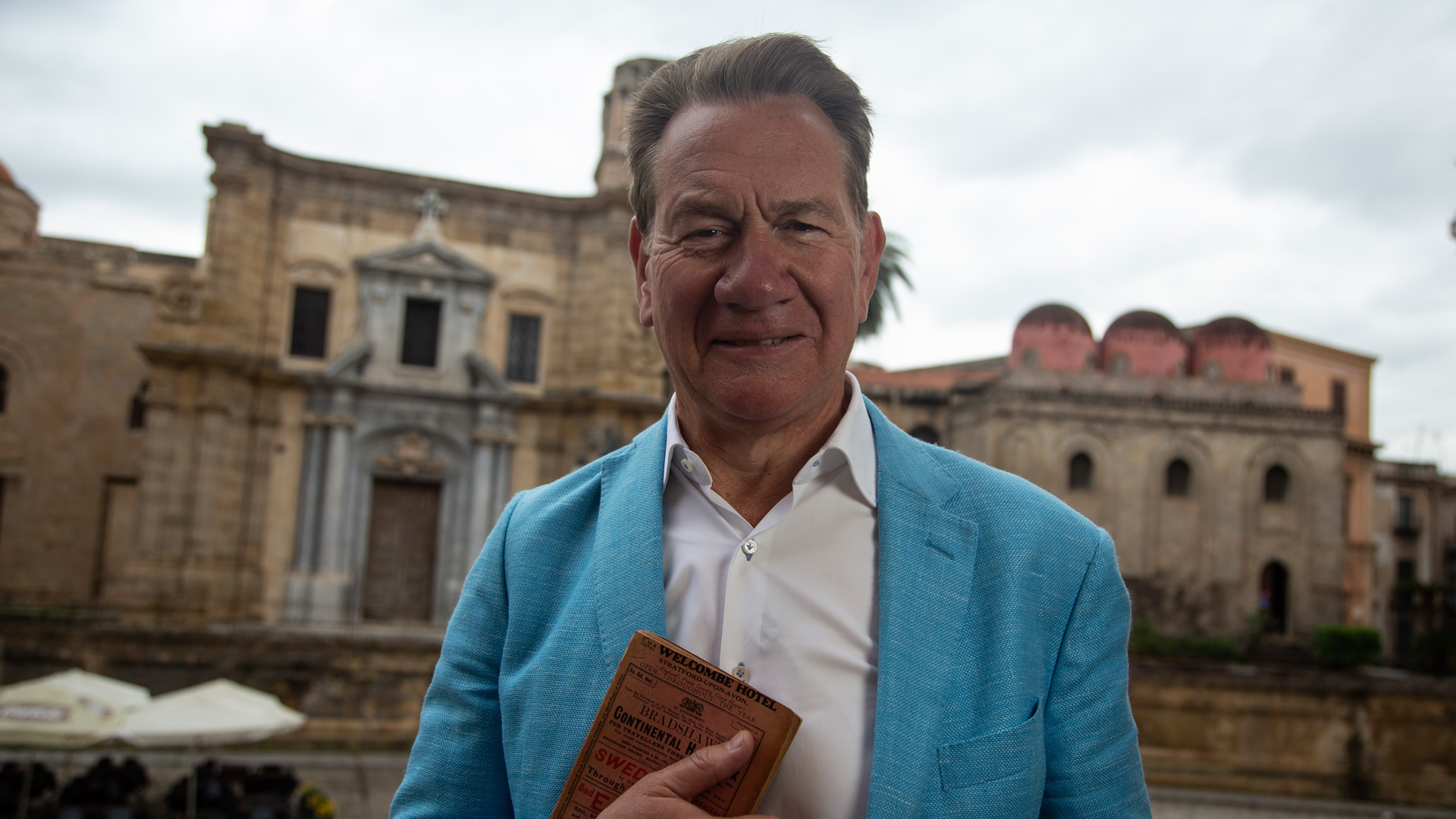 Portillo comienza su viaje en Palermo , capital de la isla italiana de Sicilia, así como, las ciudades de Agrigento y Siracusa y el Monte Etna.