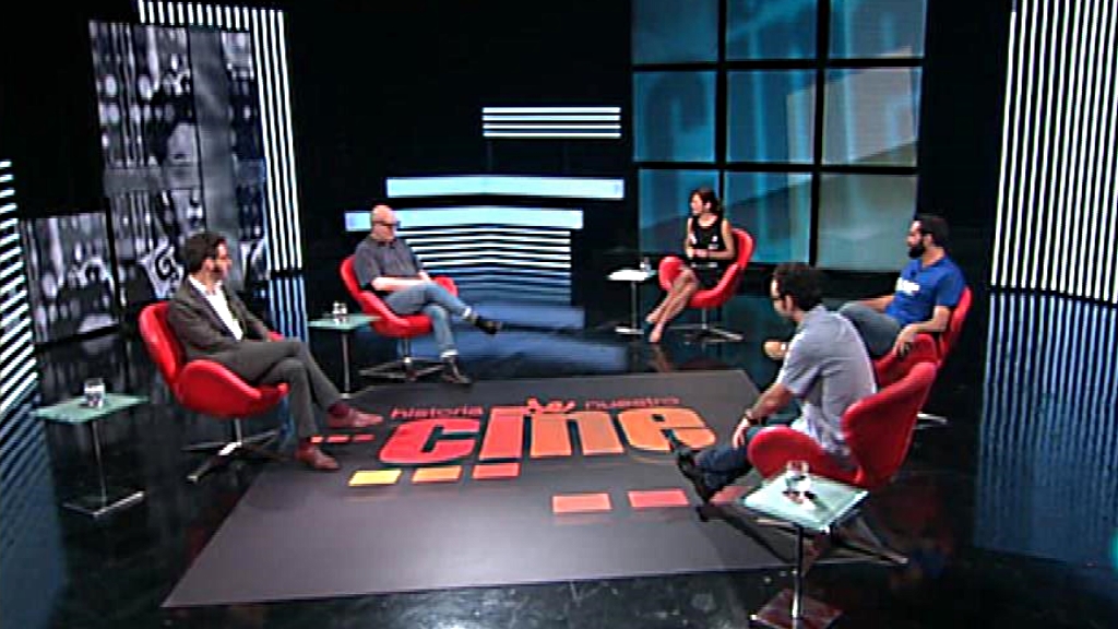 Elena S. Sánchez, Félix Tusell, Alfonso Sánchez, Santiago Aguilar y Luis E. Parés charlan sobre las películas "Topical Spanish" emitidas en la semana.