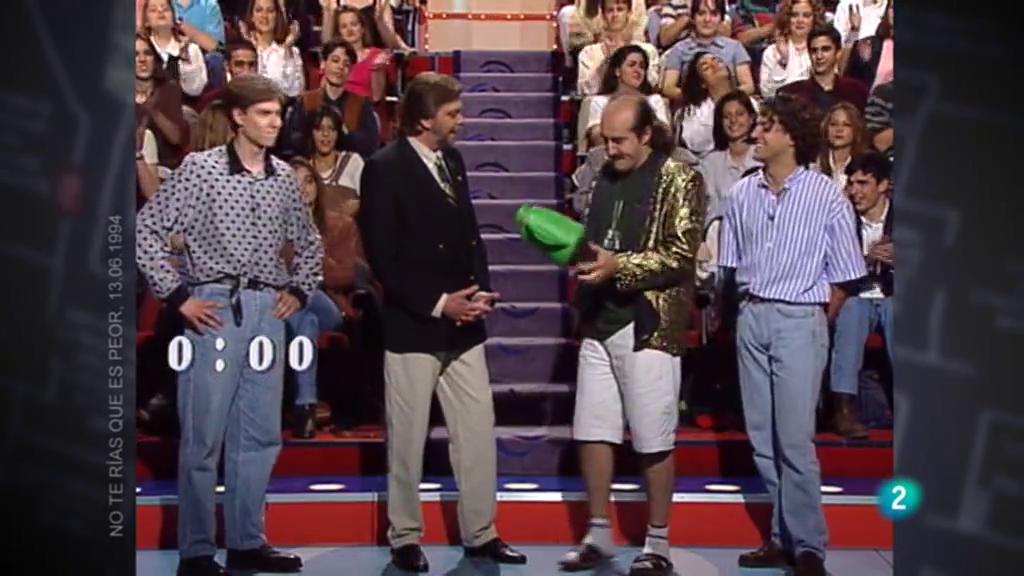 'No te rías que es peor' que s'emetia de dilluns a divendres, entre 1990 i 1995, per TVE, va arribar a ser un dels programes més vistos de la televisió a Espanya. Al llarg de les seves cinc temporades van presentar l'espai Jordi Estadella, Míriam Díaz Aroca, Ramón García i Miguel Ortíz. El realitzava Josep Maria Vidal, i un dels guionistes era Óscar Nebreda. Més tard va agafar el relleu el realitzador Jordi Vives. 'Ho has vist!?' recupera per aquesta ocasió el programa del 13 de juny de 1994.