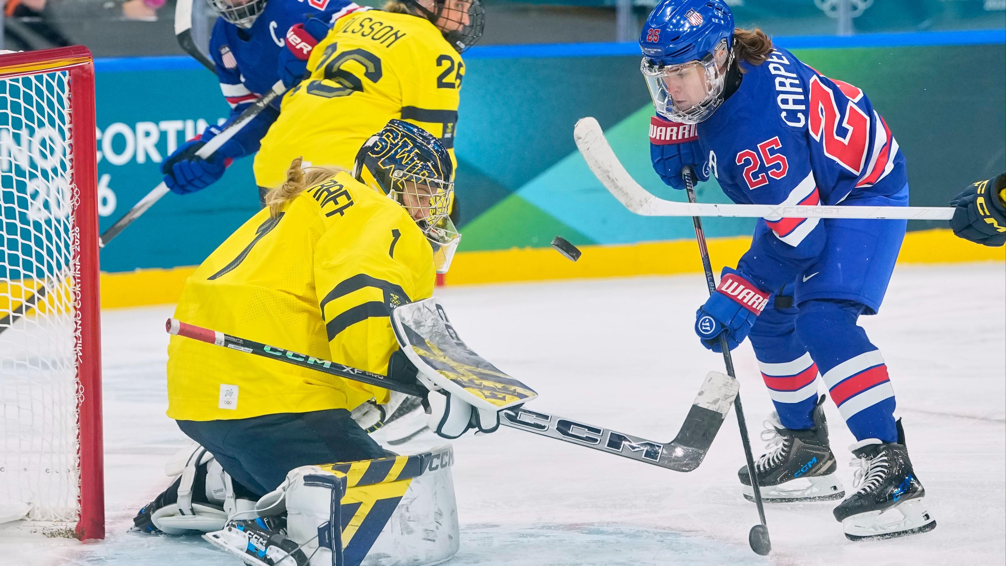 Las emociones se disparan con la primera semifinal femenina de hockey sobre hielo entre Estados Unidos y Suecia.