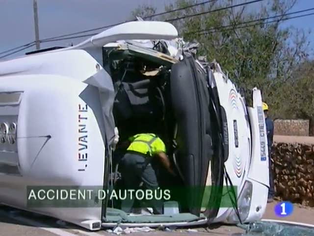 Un autocar amb una trentena de turistes ha bolcat avui dematí a la carretera de Portocristo a s'Illot, a l'alçada del creuer de Cala Morlanda, a Manacor.