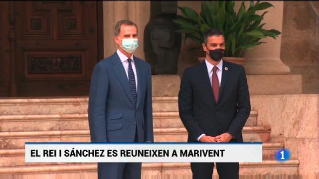 12/08/2020 00:13:00A Marivent, el President del Govern Pedro Sánchez i el rei Felip VI, junts per primera vegada després que el rei emèrit abandonés Espanya per presumptes casos de corrupció.