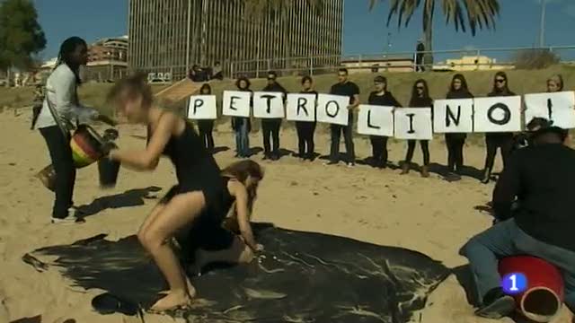 Nova acció reivindicativa contra les prospeccions petrolieres de la plataforma 'Balears diu NO'. La perfomance s'ha fet a la platja de Can Pere Antoni de Palma.