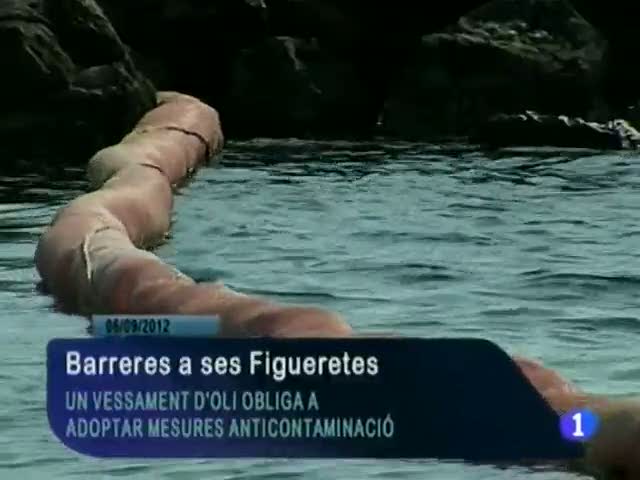 Un vessament d'oli a ses Figueretes, a Eivissa, obliga Protecció Civil a instal·lar barreres absorbents de contenció a la platja.
