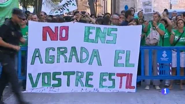 24/09/2013 00:02:02La marea verda ha arribat avui al Parlament. En el novè dia de vaga de docents, centenars de mestres i professors han tornar a buidar les aules per omplir el carrer del Palau Reial, a Palma.