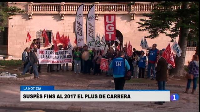 25/09/2015 00:27:09El Govern ha suspès avui fins al 2017 el pagament del complement de carrera professional que havien de cobrar els professionals de la sanitat.
