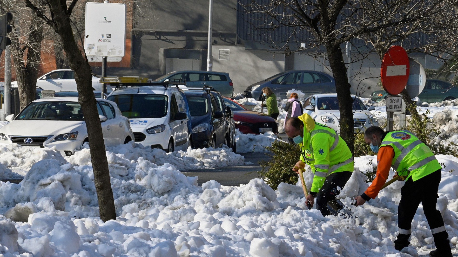 El alcalde de Madrid, José Luis Martínez-Almeida, ha pedido a los madrileños que no usen el vehículo privado porque "es fundamental que las calles estén despejadas para que podamos seguir trabajando para poder volver a recuperar la normalidad". Además, el alcalde de la capital ha anunciado que "por primera vez en la historia de Madrid la EMT va a ser gratuita el lunes, martes y miércoles de esta semana". Asimismo, el SER (Servicio de Estacionamiento Regulado) será gratuito "durante toda la semana que viene". [Última hora del temporal] Foto: EFE/Víctor Lerena