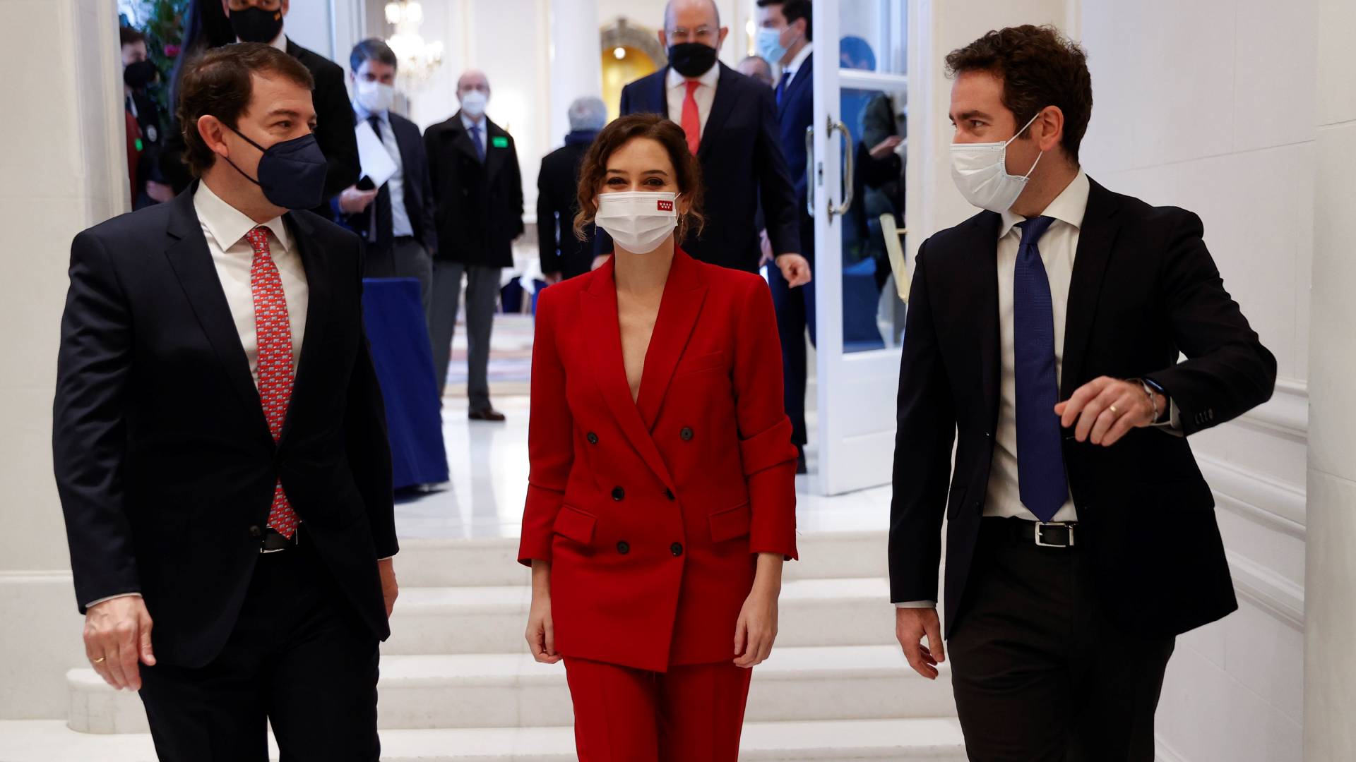 Por su parte, la presidenta de la Comunidad de Madrid, Isabel Díaz Ayuso, ha asegurado en su intervención que su relación con 'Génova' es "de total normalidad" tras haber dado en el último trimestre "algunos titulares". Al ser preguntada por la celebración del congreso del PP de Madrid, la presidenta de la Comunidad de Madrid ha reiterado que tiene "una profunda ilusión" por estar al frente del mismo y por ello cuando se convoque, se presentará. Foto: EFE/CHEMA MOYA