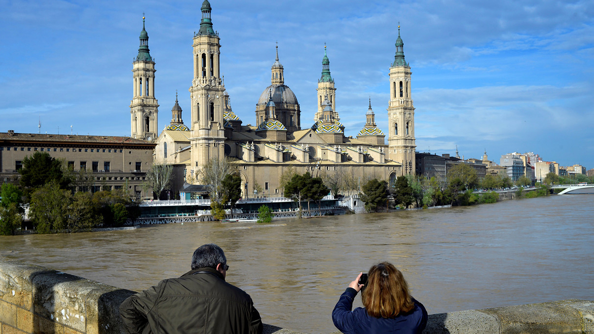 La punta de la crecida del Ebro llega a Zaragoza este domingo. A primera hora de la mañana, el agua ya llegaba a los 5 metros y 30 centímetros y el caudal acumulaba 2.000 metros cúbicos por segundo, según informa TVE. El cauldal puede llegar a los 2.200 metros cúbiocos a lo largo del día, para luego descender hasta los 1.500-2.000.