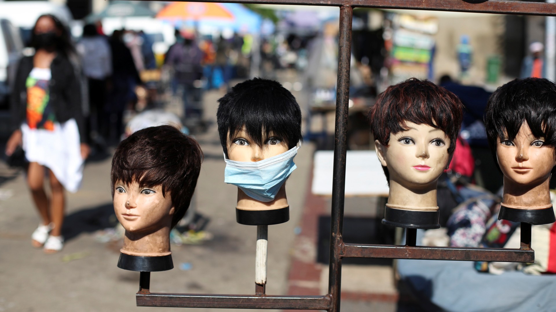 Foto: Maniquíes con mascarilla en Soweto, en Sudáfrica, después de que Reino Unido prohibiera los vuelos desde Sudáfrica tras detectar la variante ómicron en una imagen del 26 de noviembre de 2021 (REUTERS/Siphiwe Sibeko).