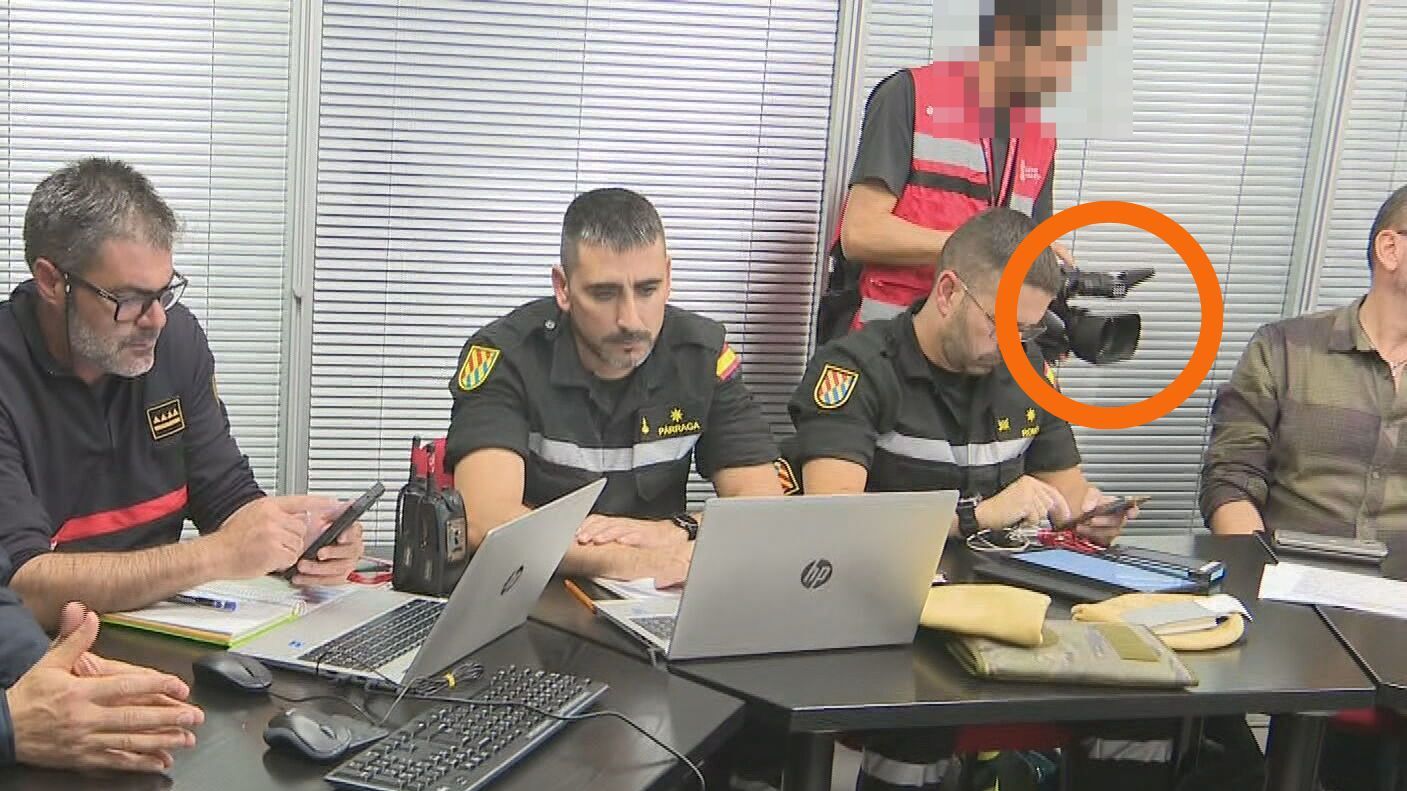En las imágenes publicadas por RTVE de la reunión del Cecopi se puede ver a un cámara contratado por la Generalitat grabando parte de la reunión
