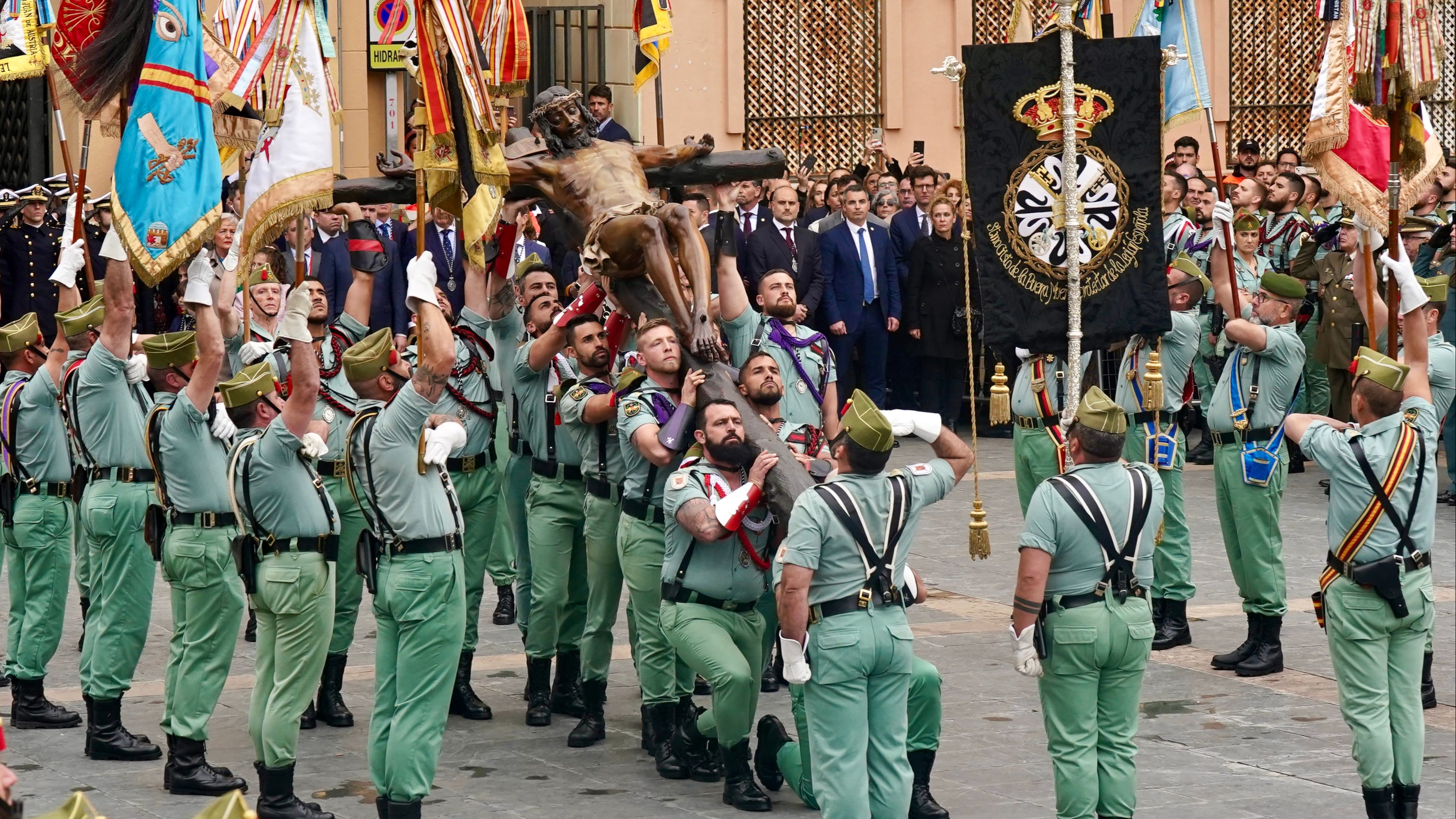 La Legión desfila en Málaga y traslada al Cristo de la Buena Muerte en un Jueves Santo marcado por el mal tiempo