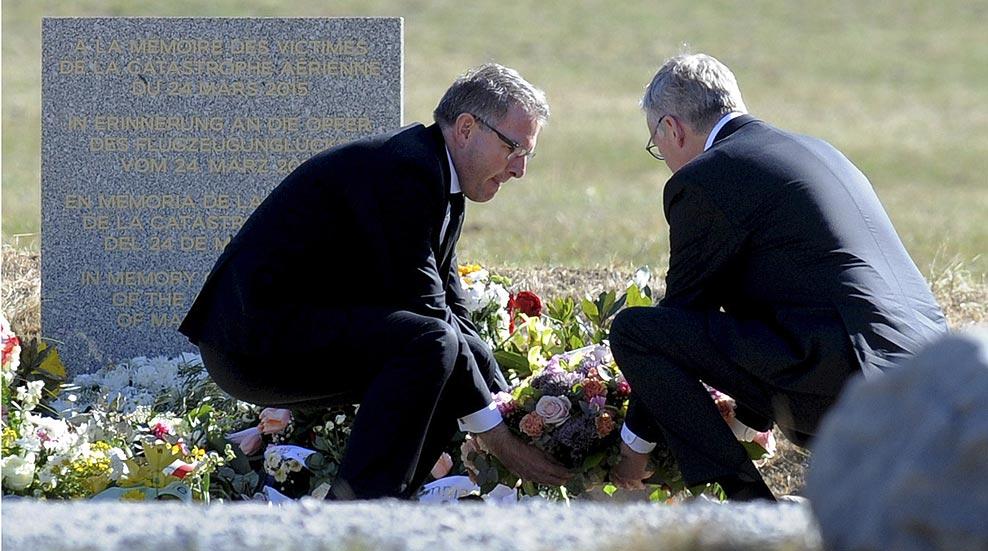 Spohr visitó junto con el presidente de Germanwings, Thomas Winkelmann, la zona próxima al lugar de la tragedia donde rindió homenaje a las víctimas con una ofrenda floral. El presidente de Lufthansa pidió de nuevo perdón en nombre de la compañía y agradeció el trabajo de los servicios de rescate franceses.