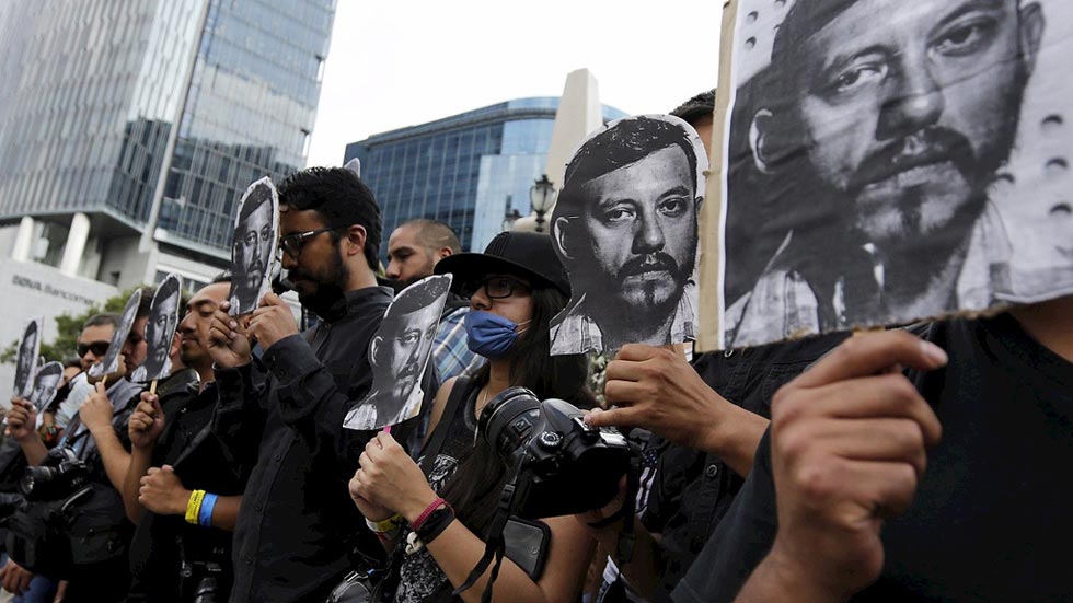 Cerca de un millar de personas se manifestaron este pasado domingo en Ciudad de México y en otras ciudades del país para protestar por el asesinato del fotoperiodista Rubén Espinosa y de cuatro mujeres.