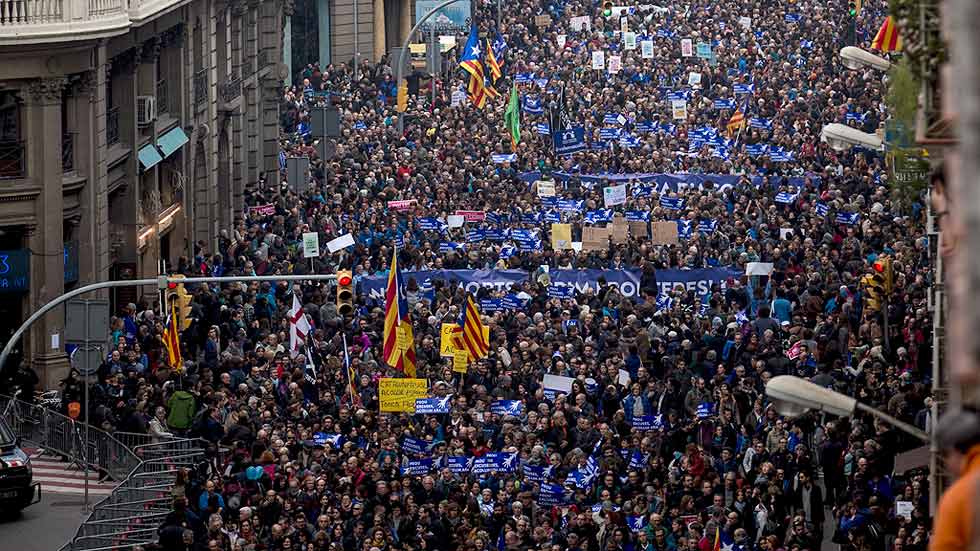 Miles de personas se manifiestan en Barcelona a favor de la acogida de refugiados