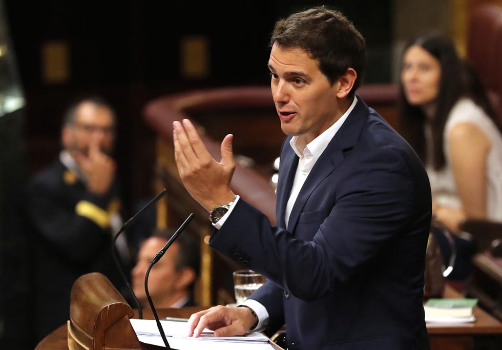 El líder de Ciudadanos, Albert Rivera, dice que el verdadero objetivo de Podemos es destrozar al PSOE.