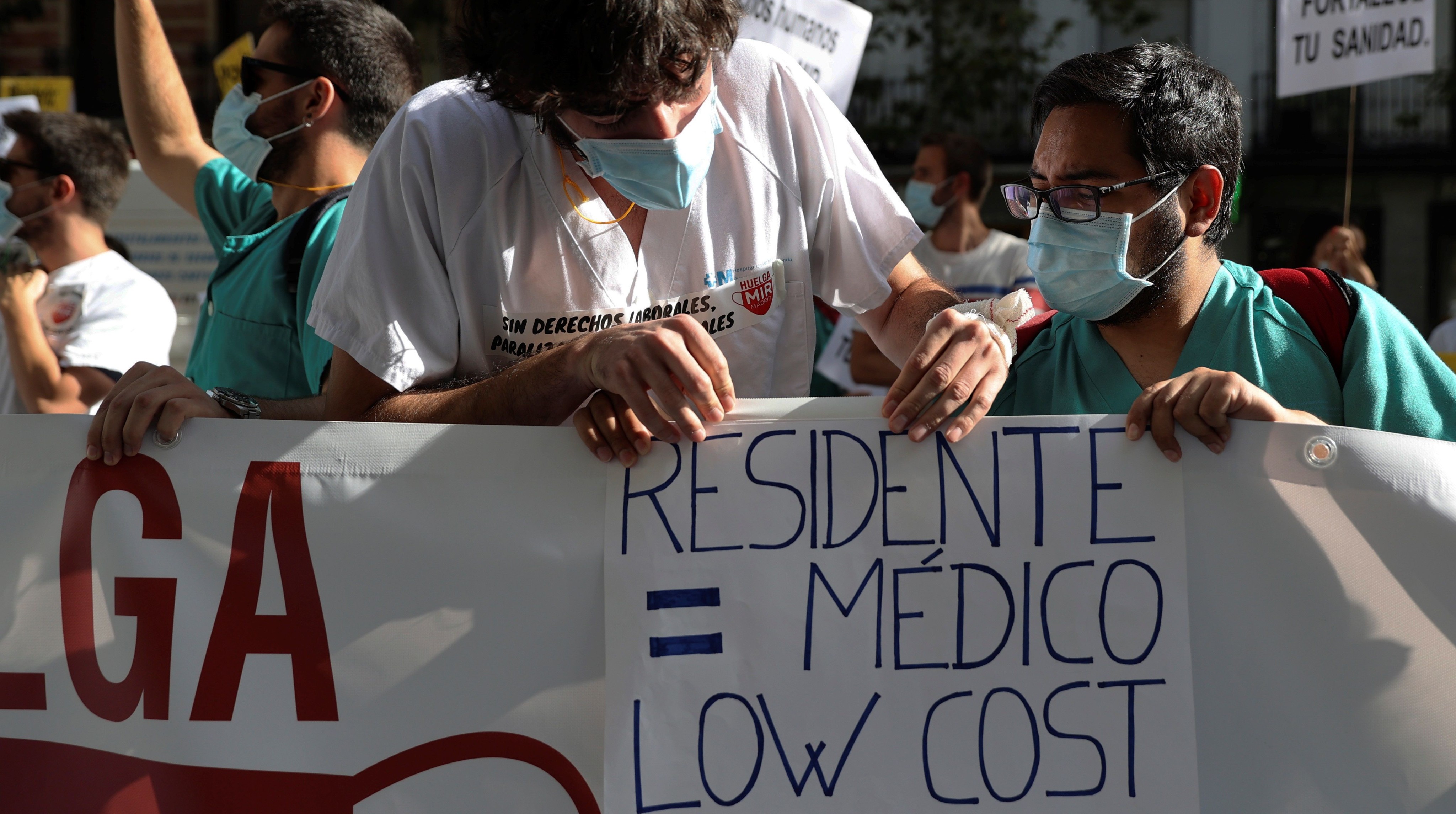 Los Médicos Internos Residentes (MIR) protestan en las puertas de los hospitales de Madrid para reclamar mejores condiciones laborales y salariales.