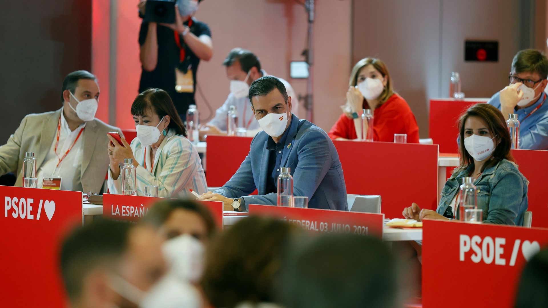 En la imagen, Pedro Sánchez junto a otros miembros del partido en el Comité Federal. EFE/Chema Moya.