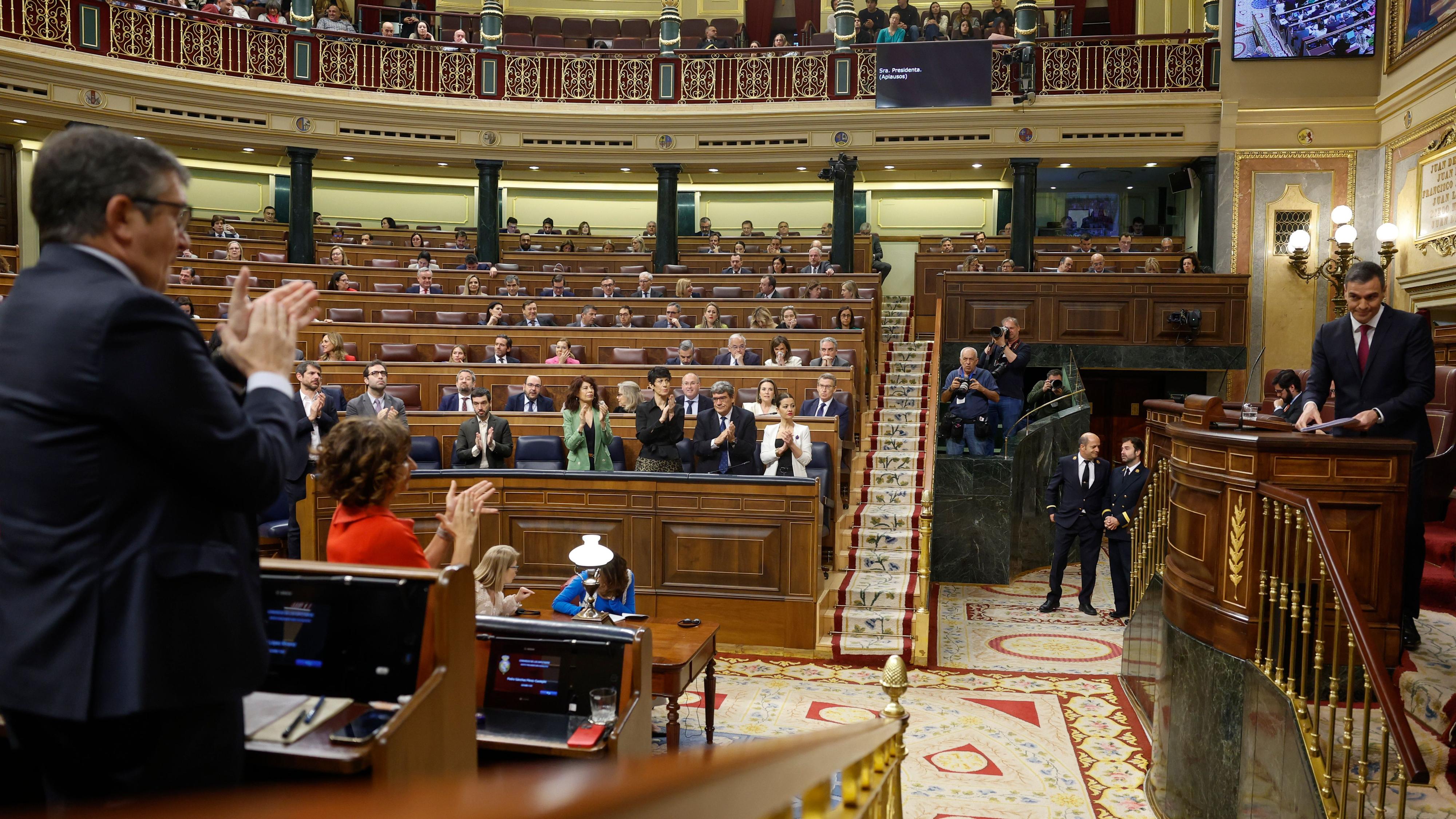 FOTO: Pedro Sánchez, recibe aplausos tras intervenir en el Congreso este miércoles. EFE/ Mariscal