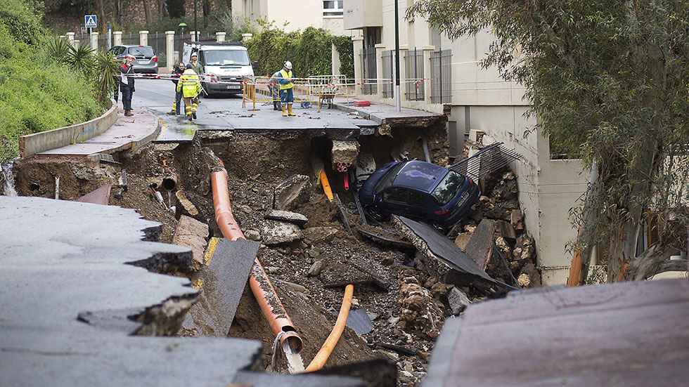 Una tromba de agua y granizo causa destrozos e inundaciones en Málaga