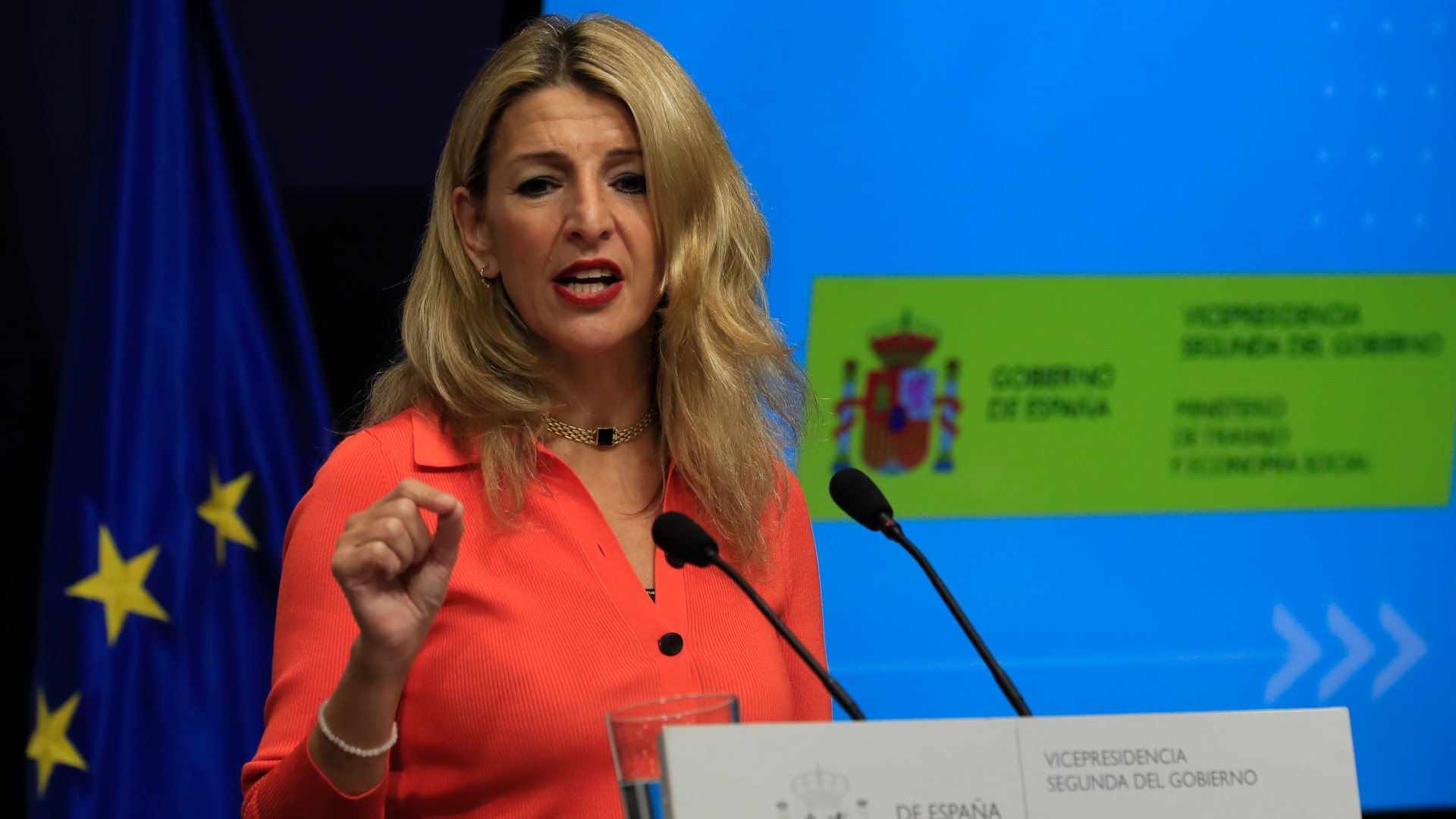 Foto: La vicepresidenta segunda del Gobierno y ministra de Trabajo y Economía Social, Yolanda Díaz, comparece este miércoles en rueda de prensa para hacer balance del primer aniversario de la aprobación de la Reforma Laboral en la sede del Ministerio de Trabajo en Madrid. EFE/ Fernando Alvarado.