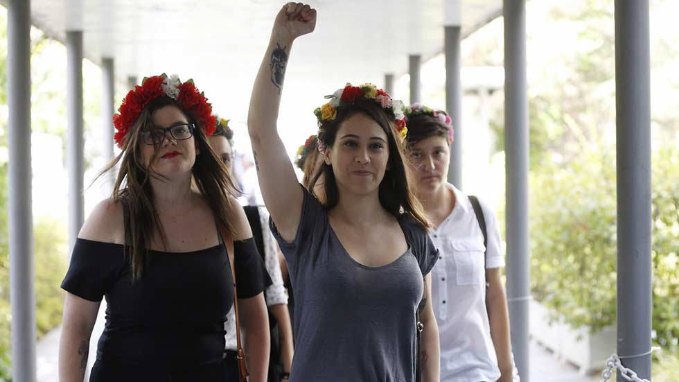 19/07/2016 00:02:27Es la primera vez que se sientan en el banquillo de los acusados. Son cinco activistas de FEMEN la organización reconocida por las protestas de sus...