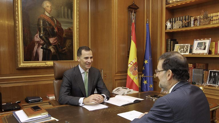 20/06/2014 00:03:18Ha sido el primer despacho de Don Felipe, como Rey. Durante algo más de una hora, y en la misma dependencia que hasta ahora usaba el Rey Don Juan Carlos, Felipe VI se ha reunido con el presidente del Gobierno, Mariano Rajoy. Ambos han compartido su impresión positiva sobre cómo transcurrió la jornada de proclamación. Y hemos visto ya algunos cambios en el despacho, el cuadro que presidía las reuniones de trabajo es ahora un óleo de Carlos III con armadura. Y sobre la mesa, un mensaje de apoyo del nuevo Rey, a la selección española, tras su derrota en Brasil, una pequeña reproducción de la Copa del Mundo ganada en Sudáfrica. Y numerosas fotos familiares. Sobre la mesa, sí continúa el ejemplar de la Constitución Española que ha usado su padre durante años.