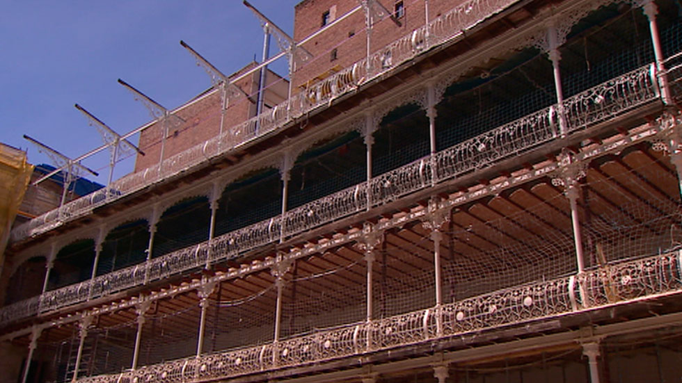 Es el frontón Beti Jai, en pleno proceso de rehabilitación. Las primeras obras le han salvado de una posible ruina, recuperando la fachada...