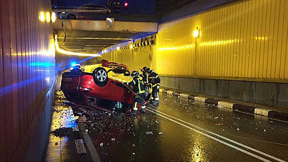 A doscientos cuarenta kilómetros hora por la M 40 mientras se graba y conversa a través de la red social Periscope. Lo mismo adelanta por la...