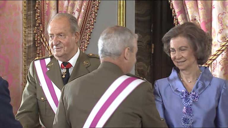 17/06/2014 00:28:05Los Reyes de España ofrecen en el Palacio de la Zarzuela, un almuerzo a las principales instituciones del Estado. Es el último acto oficial de Don Juan Carlos y Doña Sofía tras la abdicación del Rey. Un almuerzo-despedida al que asisten, entre otros, el presidente del Gobierno, Mariano Rajoy, y los presidentes del Congreso de los Diputados, Jesús Posada, y del Senado, Pío García Escudero. Un acto que coincide con la votación en el Senado de la ley que hará efectiva la abdicación de Don Juan Carlos. Mientras, en las calles, a dos días de la proclamación de Felipe VI, como Rey, continúan los preparativos. En la Plaza de Oriente, donde los futuros monarcas saludarán a los ciudadanos, se cambian adoquines, se plantan geranios y petunias blancos, y los comerciantes de la zona, exhiben souvenirs con las fotos oficiales de Felipe VI y Doña Letizia.