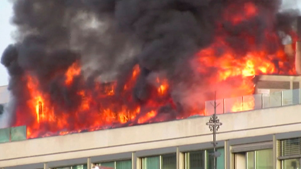 Ha sido el gran susto de la mañana. Minutos después de las ocho, las llamas arrasaban los equipos eléctricos instalados en la azotea del número...