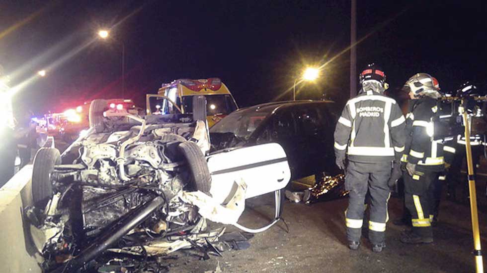 Así ha quedado uno de los dos automóviles que esta medianoche chocaban de frente en la M 500, en la carretera de Castilla entre Pozuelo y Madrid....