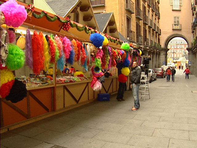 82 casetas se plantan, desde hoy y hasta después de reyes, en el mercado navideño de la plaza Mayor. Se venden belenes, adornos, árboles y dulces. También se ha colocado un carrusel antiguo. Los puestos con artículos de broma y disfraces, se encuentran en la plaza de la Santa Cruz.