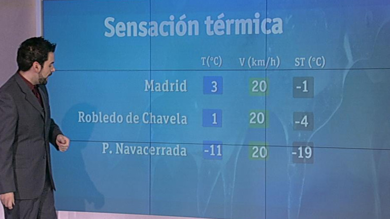 02/02/2012 00:01:00La previsión meteorológica en la Comunidad de Madrid para este jueves indica que habrá alerta amarilla por temperaturas mínimas de hasta -9 grados en la Sierra y de -4 grados en la zona metropolitana, Henares, Sur y vegas, según ha informado la Agencia Estatal de Metereología (AEMET). Los cielos estarán poco nubosos o despejados y en la Sierra habrá intervalos nubosos con posibilidad de algún chubasco débil de nieve, disminuyendo a poco nuboso. Habrá bancos de niebla en zonas altas de la Sierra de madrugada. Los vientos de componente norte soplarán flojos aumentando a moderados, con intervalos de fuertes en la Sierra. Las temperaturas mínimas descenderán ligeramente y las máximas lo harán moderadamente. Además, habrá heladas débiles generalizadas, localmente moderadas. Así, el termómetro oscilará en Madrid capital entre los -3 y 7 grados; en Buitrago entre los -9 y 2; en Getafe entre los -2 y 6; en Aranjuez entre los -4 y 8; y en Navacerrada entre los -9 y los -3 grados.