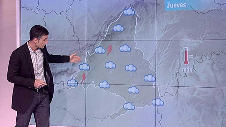 03/05/2012 00:00:40La previsión meteorológica en la Comunidad de Madrid para este jueves indica que los cielos estarán nubosos, aumentando a muy nubosos con chubascos débiles localmente moderados y que pueden ir acompañados ocasionalmente de tormenta, sobre todo por la tarde y en la sierra, según ha informado la Agencia Estatal de Meteorología (AEMET). La cota de nieve estará entre los 1.900 y 2.000 metros, bajando ocasionalmente a 1.700-1.800 de madrugada. Además, habrá bancos de niebla en zonas altas de la sierra. Las temperaturas mínimas sufrirán un ligero a moderado ascenso, mientras que las máximas permanecerán sin cambios. Los vientos del Sur y Sureste soplarán flojos con intervalos de moderados en las horas centrales del día. Así, el termómetro oscilará en Madrid capital entre los 10 y 17 grados; en Buitrago entre los 6 y 13; en Getafe entre los 9 y 18; en Aranjuez entre los 8 y 17; y en Navacerrada entre los 2 y los 6 grados.
