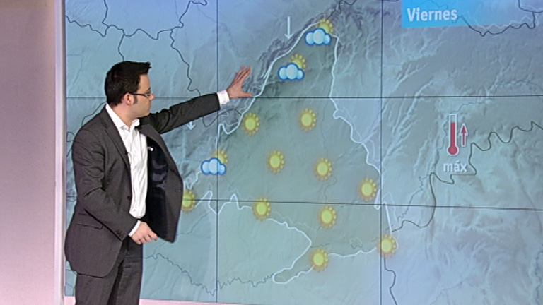 10/02/2012 00:01:12La previsión meteorológica en la Comunidad de Madrid para este viernes indica que habrá alerta amarilla por temperaturas mínimas de hasta -6 grados en la Sierra y de -4 grados en la zona metropolitana, Henares, Sur y Vegas, según ha informado la Agencia Estatal de Meteorología (AEMET). Los cielos estarán poco nubosos o despejados, con algún intervalo de nubes medias y altas. Además, las temperaturas permanecerán sin cambios o en ligero ascenso, moderado en las mínimas de las zonas altas de la sierra. Habrá heladas débiles a moderadas, y los vientos de componente Norte soplarán flojos a moderados, con intervalos de fuertes en zonas altas de la Sierra. Así, el termómetro oscilará en Madrid capital entre los -1 y 7 grados; en Buitrago entre los -3 y 3; en Getafe entre los -1 y 9; en Aranjuez entre los -5 y 10; y en Navacerrada entre los -6 y los -3 grados.