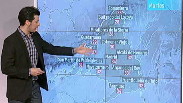 28/06/2011 00:01:53La previsión meteorológica para hoy, martes, en la Comunidad de Madrid, indica que habrá alerta naranja por altas temperaturas que llegarán gasta los 39 grados en la zona del Sur y las Vegas desde las 14 horas hasta las 20 horas, según ha informado la Agencia Estatal de Meteorología (AEMET). Además, en la Sierra y en la zona Metropolitana y del Corredor estarán en alerta amarilla, donde las temperaturas alcanzarán los 35 y los 38 grados, respectivamente. Los cielos estarán poco nubosos o despejados, aumentando a intervalos de nubosidad media y alta y con evolución diurna por la tarde, más desarrollada en la sierra, donde hay posibilidad de algún chubasco o tormenta débil y aislado. Los vientos soplarán flojos de dirección variable de madrugada, girando a Oeste y Suroeste flojos con intervalos de moderados en las horas centrales del día. El termómetro oscilará en Madrid capital entre los 23 y los 38 grados; en Buitrago, entre los 13 y los 34; en Getafe, entre los 23 y los 38; en Aranjuez, entre los 21 y los 39; y en Navacerrada, entre los 17 y los 28 grados.