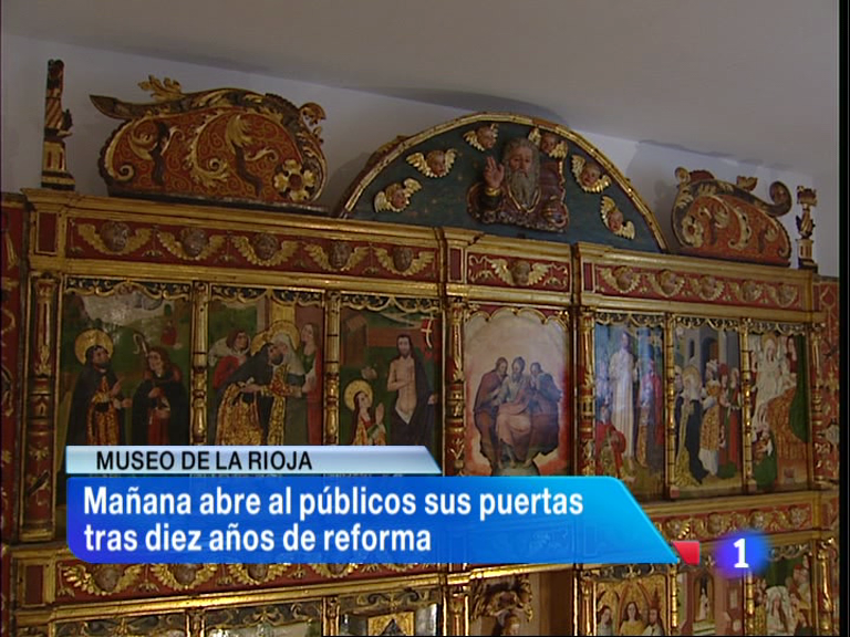 21/10/2013 00:07:04Desde mañana, los ciudadanos ya pueden visitar el Museo de La Rioja, cerrado desde hace nueve años. El presidente riojano considera que el de La Rioja es el mejor museo provincial de España y será un nuevo aliciente turístico para la capital riojana. Entrevista al consejero de Cultura, Gonzalo Capellán. La Dirección General de Tráfico pone en marcha una campaña de vigilancia y control de las carreteras secundarias. Curso sobre expropiación. El Consejo Riojano de Comercio acuerda los diez festivos que abrirán en 2014. El Servicio de mediación intrajudicial apuesta por resolver conflictos sin recurrir a la vía judicial y esta mañana, el Ejecutivo ha firmado un convenio de colaboración con el colegio de Psicólogos para apoyar su labor. Certamen en Agoncillo de aeromodelismo. En Expoboda Rioja 2013 más de 30 empresas dedicadas a la organización y celebración de enlaces permiten a los novios hacerse una idea de los servicios y gastos de un evento único. El director de cine riojano Santiago Tabernero presenta en la Semana Internacional de Cine de Valladolid su película "Presentimientos". Las chicas del Murillo se proclaman campeonas de la Supercopa de Voley femenina ante el Haro Rioja Voley. El Naturhouse empata con el Flensburg alemán en Champions. Empates de la UDL y la SDL. El Cocinas.com perdió por 56 a 109 ante el River Andorra. Versión de `Carmen¿ de Távora.