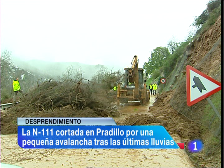30/04/2013 00:10:07La carretera Nacional 111 ha estado cortada durante casi toda la mañana por un desprendimiento en el término municipal de Pradillo. A primeras horas del día se ha producido una pequeña avalancha de tierra y piedras por las corrientes de agua y las filtraciones del talud de la carretera. Ha sido necesario desviar el tráfico desde el cruce de Nieva al de Villanueva por carreteras regionales. Ciberespionaje industrial y cibersabotaje, los delitos también se trasladan al ámbito informático. En España casi 2 millones de hogares tienen a todos sus miembros en paro. El dato se extrae de la última encuesta de población activa. En La Rioja, los principales alimentos ecológicos que se elaboran son vino, aceite, frutas y hortalizas, patatas, conservas, miel, lácteos y los embutidos, así como licores. Para impulsar su comercialización y difusión de sus propiedades, el Gobierno de La Rioja aporta 85.000 euros. El consejero de Agricultura, Iñigo Nagore, ha urgido hoy a la Interprofesional del vino de Rioja para que desbloqueen la elección de su nuevo presidente convocando una asamblea y están en contracto con el Ministerio de Agricultura. Jornada de Cooperación Empresarial organizado por el gobierno de La Rioja para la internacionalización de las empresas. El Teatro Bretón de Logroño ofrece espectáculos para escolares de edades comprendidas entre los siete y los doce años. La idea es que aprendan a amar los escenarios desde pequeños. La compañía catalana La Pera Llimonera ha puesto en escena el espectáculo titulado Tortuga, La isla de Teodoro. Exposición de moda, con las creaciones de los alumnos de la Escuela Superior de Diseño de La Rioja.