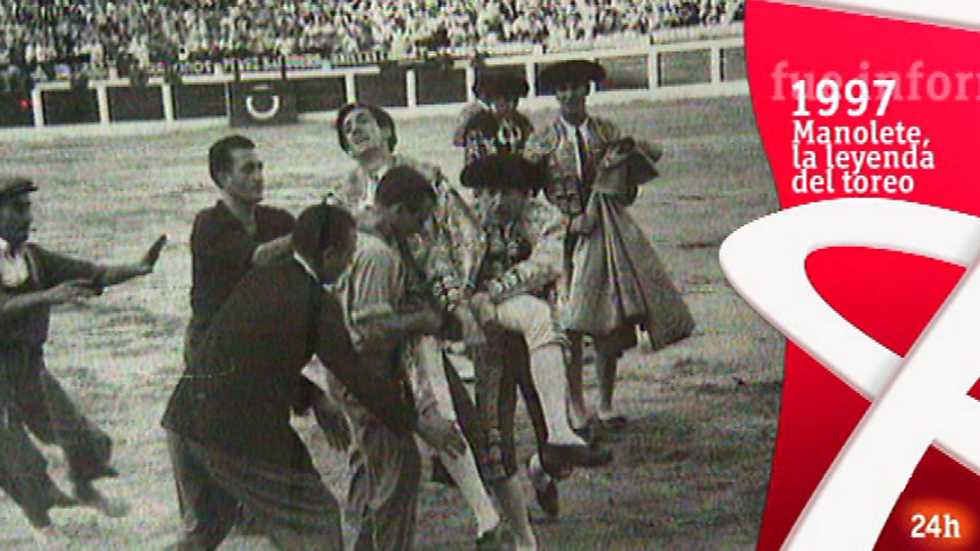 02/11/2015 00:17:52Hay un antes y un después de Manuel Rodríguez, en el mundo del toreo. Hay un antes y un después de Manolete. Un astado, de nombre Islero, acababa ahora hace 68 años, con la vida del matador de toros. Manolete salía al ruedo y lo daba todo.. con gesto serio, mirada altiva, elegante y majestuoso.. Despertó grandes críticas por su forma de torear, pero lo cierto es que se convirtió en torero de moda. Manolete se enamoró de una actriz de reparto, Lupe Sino que le acompañó en sus tardes de gloria y también en sus fracasos hasta el final de sus días. Informe Semanal recordaba a esta leyenda de la tauromaquia en el homenaje que 50 años después de su muerte le rindieron, sobre la arena que le vio morir, tres matadores: Armillita, el Litri y Enrique Ponce.