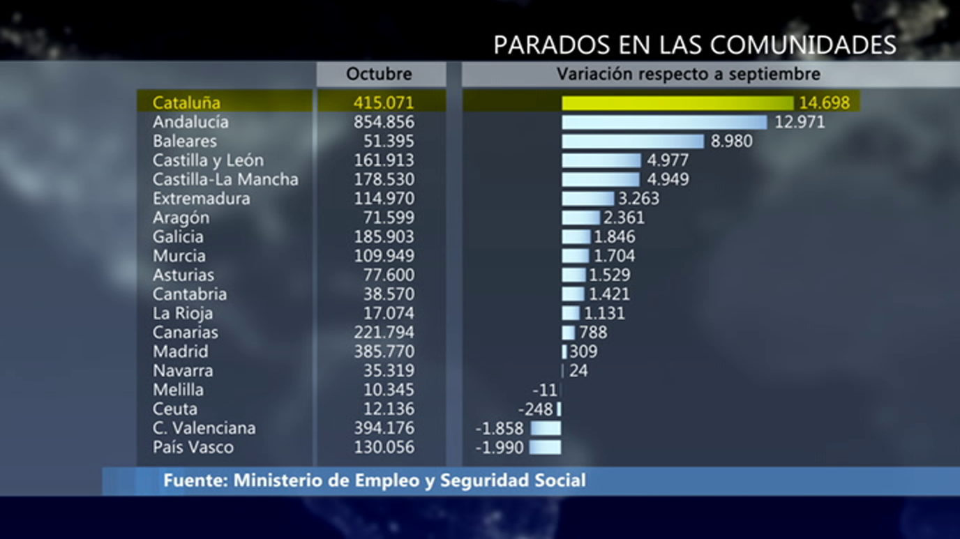 Informe Semanal hace cuentas de lo que está suponiendo la salida de empresas, la congelación de inversiones, la caída del turismo, la bajada de ventas de vehículos o el retroceso en el comercio minorista en Cataluña. El programa entrevista a José Luis Feito, presidente del Instituto de Estudios Económicos; Ramón Tamames, economista y miembro de la Real Academia de Ciencias Morales y Políticas; Fernando Trías de Bes, economista, escritor y colaborador de La Vanguardia y ARA; Daniel Lacalle, economista y experto en gestión de inversiones; y a Javier Gabriel, empresario de La Bruixa d'Or, que ha sacado la sede de sus empresas de Cataluña.