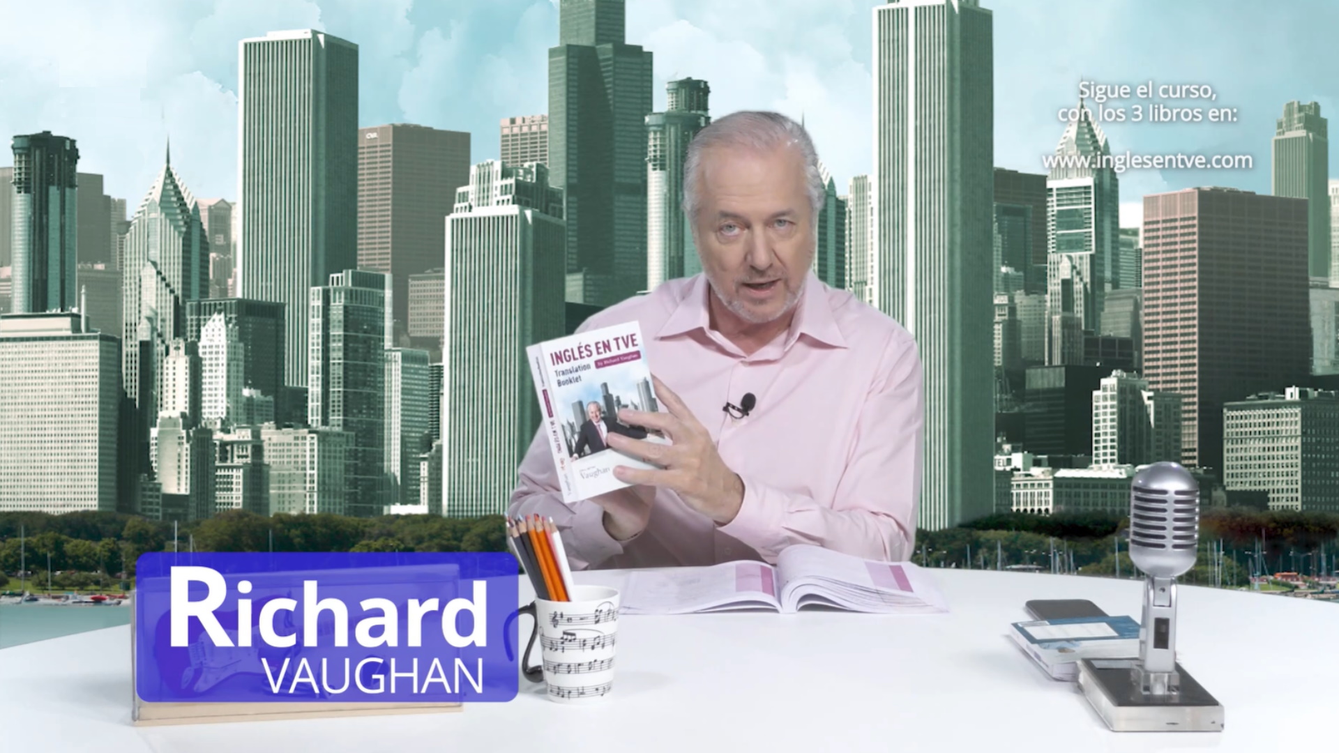 Richard Vaughan da clases de 26 minutos de inglés siguiendo el manual del estudiante creado en Vaughan.