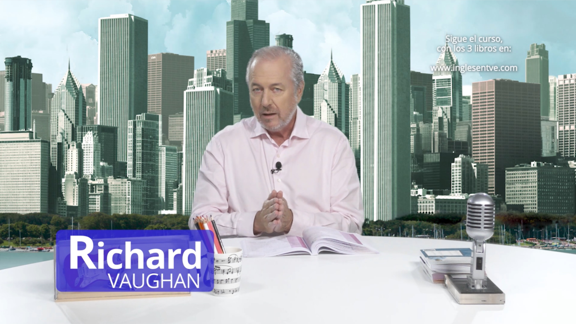 Richard Vaughan da clases de 26 minutos de inglés siguiendo el manual del estudiante creado en Vaughan.