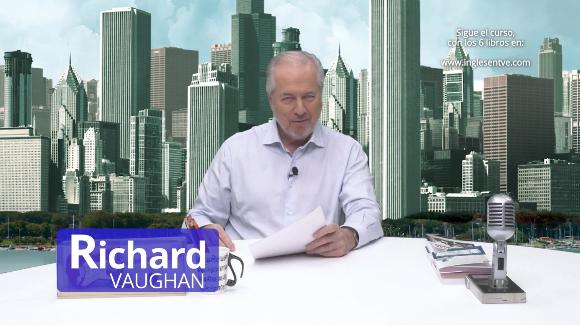 Richard Vaughan da clases de 26 minutos de inglés siguiendo el manual del estudiante creado en Vaughan.